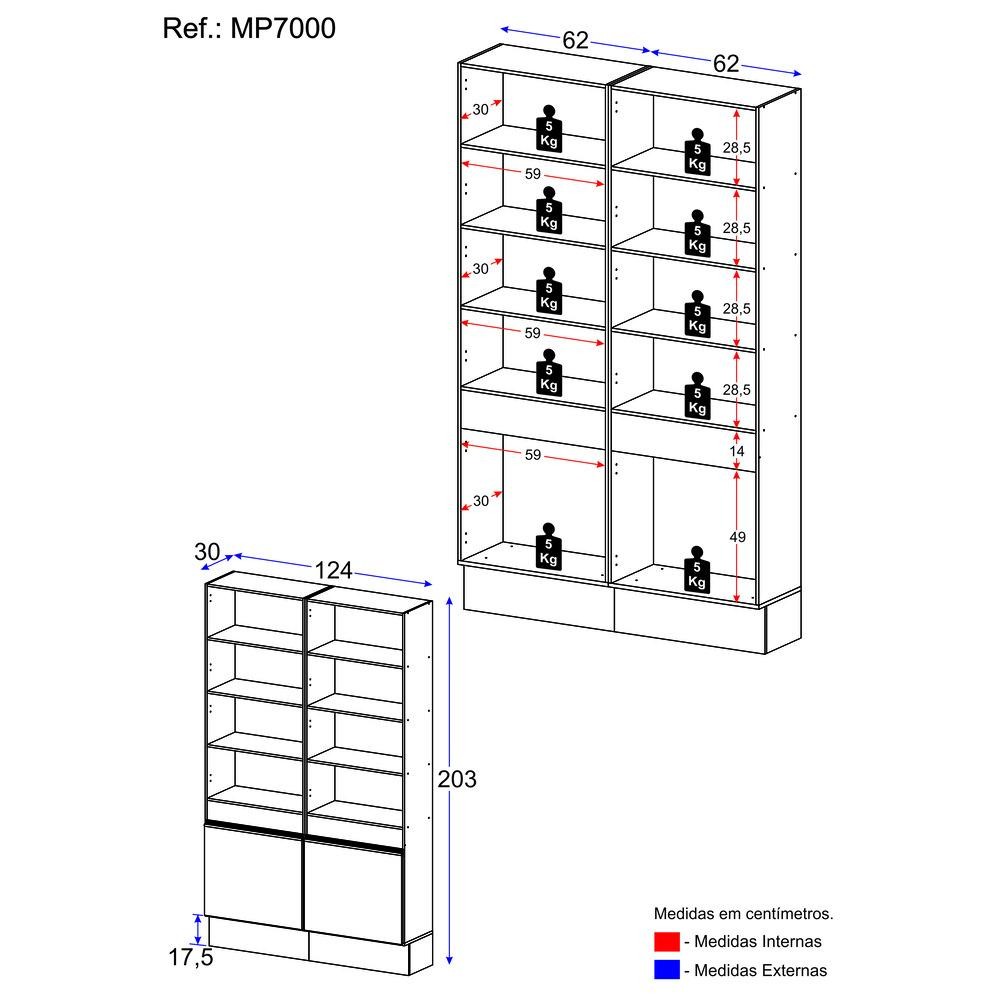 O Armário/Estante Escritório 2 Portas Multimóveis MP7000 é o móvel perfeito para organizar seu espaço de trabalho com estilo e funcionalidade. Produzido em MDP, ele possui um acabamento acetinado (cerca de 20% de brilho), adicionando um toque sofisticado ao ambiente. Com suas 6 prateleiras espaçosas (suporta 5kg cada), você terá amplo espaço para armazenar livros, documentos e objetos decorativos. Além disso, o armário conta com 2 portas com puxadores em ABS, garantindo praticidade na hora de guardar itens que precisam ficar fora da vista. Os módulos são avulsos e você pode montar no seu ambiente na disposição que preferir. Conteúdo da Embalagem: 1 (um) Armário/Estante Kit Ferragem Manual de Montagem Dimensões do produto montado: Altura: 203cm | Largura: 124cm | Profundidade: 30cm *Você pode consultar as medidas detalhadas na imagem técnica do produto. *As cores do produto podem sofrer variações de tonalidade de acordo com as configurações do seu dispositivo. *Obrigatório fixar na parede. Imagem meramente ilustrativa. Decoração não acompanha o produto. O produto será entregue desmontado e não disponibilizamos o serviço de montagem.