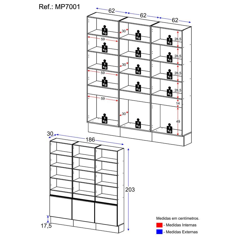 O Armário/Estante Escritório 3 Portas Multimóveis MP7001 é a solução perfeita para organizar seu ambiente de trabalho com elegância e praticidade. Produzido em MDP, possui um acabamento acetinado (cerca de 20% de brilho), garantindo um visual sofisticado. Com 3 portas com puxadores em ABS, você pode guardar seus pertences com segurança. Além disso, conta com 9 prateleiras espaçosas (suporta 5kg cada) para armazenar livros, documentos e objetos decorativos. Esse armário é o móvel ideal para tornar seu espaço de trabalho mais funcional e bonito. Os módulos são avulsos e você pode montar no seu ambiente na disposição que preferir. Conteúdo da Embalagem: 1 (um) Armário/Estante Kit Ferragem Manual de Montagem Dimensões do produto montado: Altura: 203cm | Largura: 186cm | Profundidade: 30cm *Você pode consultar as medidas detalhadas na imagem técnica do produto. *As cores do produto podem sofrer variações de tonalidade de acordo com as configurações do seu dispositivo. *Obrigatório fixar na parede. Imagem meramente ilustrativa. Decoração não acompanha o produto. O produto será entregue desmontado e não disponibilizamos o serviço de montagem.