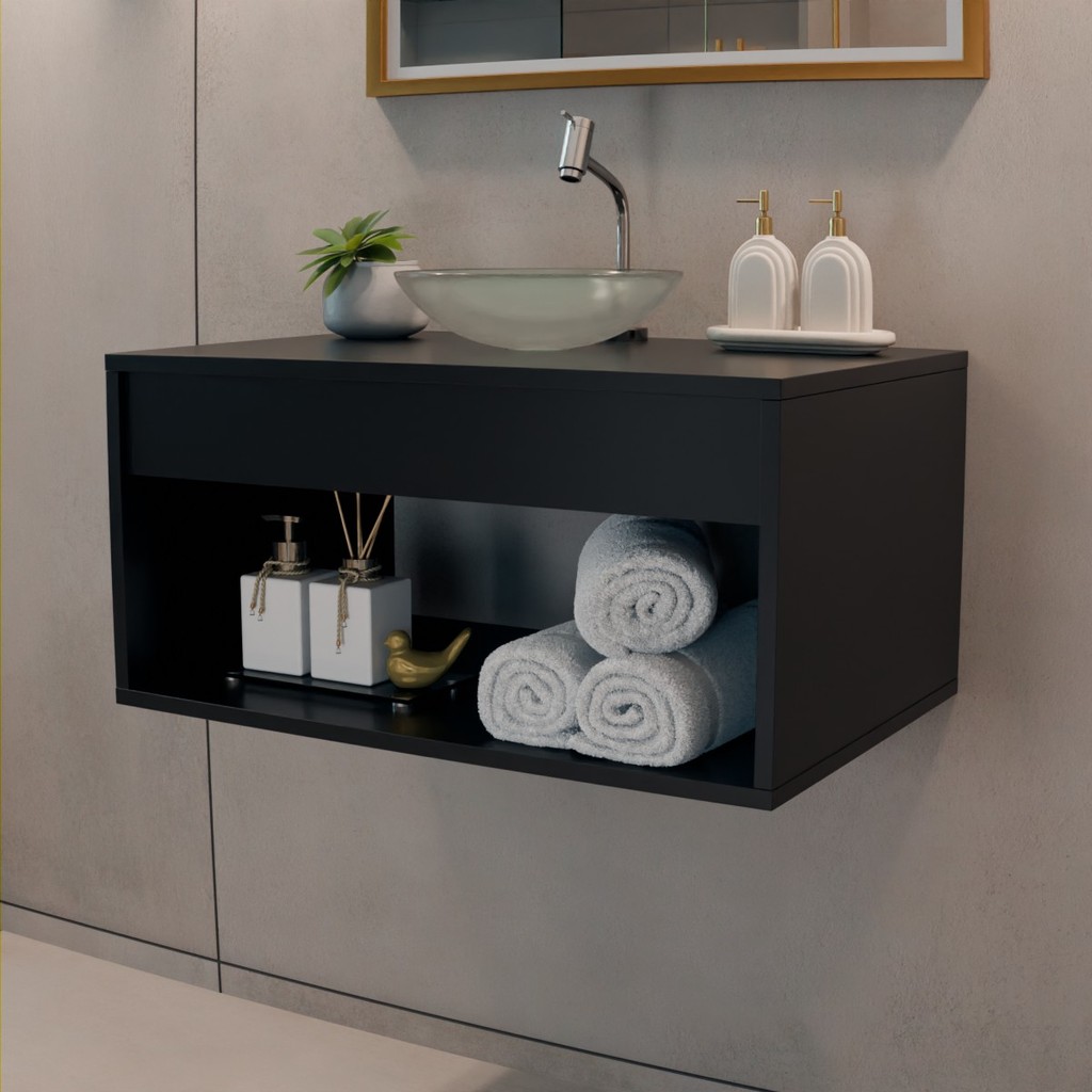 Armário Gabinete Banheiro Madri 60cm Com Cuba Transparente Promoção