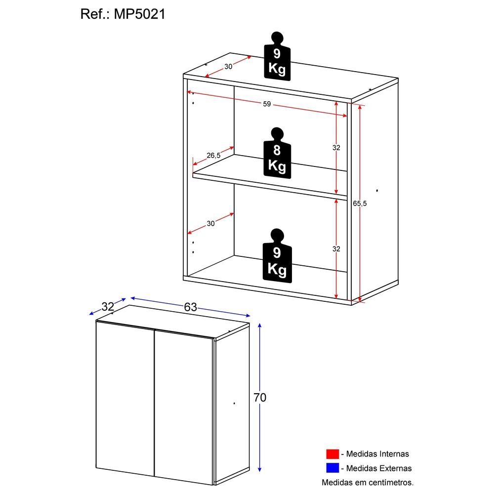 O Armário Lavanderia com 2 Portas Multimóveis MP5021 é produzido em MDP com acabamento acetinado (cerca de 20% de brilho), que garante maior durabilidade, facilidade na limpeza, além de um acabamento superior. Com 2 portas, possui um excelente espaço interno para organizar utensílios e produtos de limpeza (a prateleira interna suporta 8 Kg e o tampo 9 Kg) e ainda acompanha kit para ser montado de forma suspensa, conforme a altura que você quiser do chão. Conteúdo da Embalagem: 1 (um) Armário 2 portas 1 (um) kit com suporte suspenso para armário Kit ferragem Manual de montagem Dimensões do produto montado: Altura: 70cm | Largura: 63cm | Profundidade: 32cm *Você pode consultar as medidasdetalhadas na imagem técnica do produto. *As cores do produto podem sofrer variações de tonalidade de acordo com as configurações do seu dispositivo. Imagem meramente ilustrativa. Decoração e eletros não acompanham o produto. O produto será entregue desmontado e não disponibilizamos o serviço de montagem.