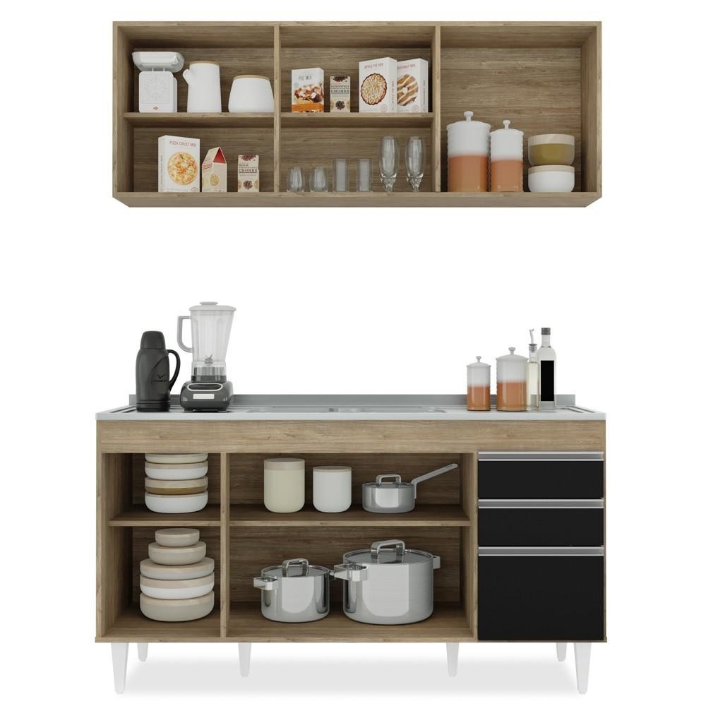 Armário Líbia e Balcão com Pia Inox 150cm Tunísia L03 Castanho/Preto - Mpozenato