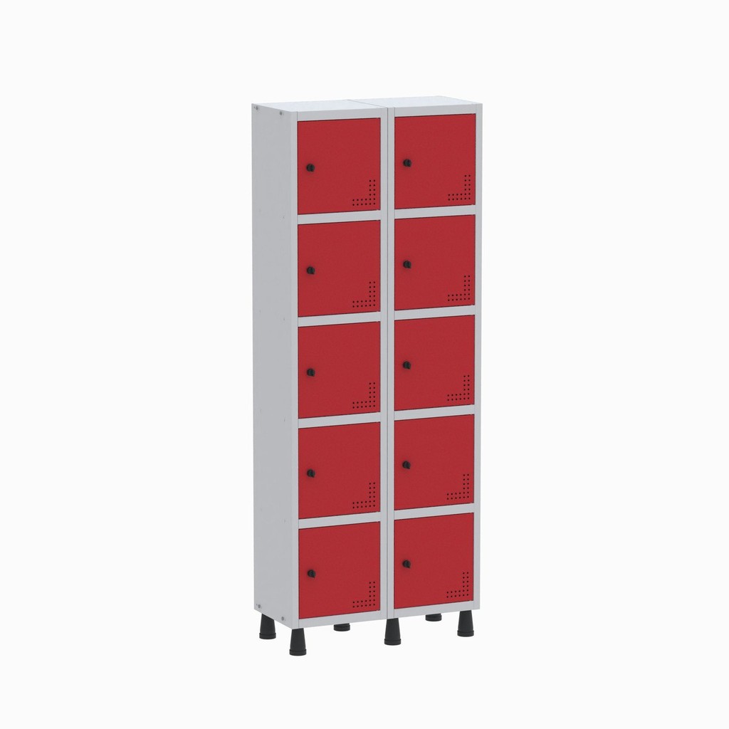 Armário Locker Guarda Volume Aço Light 10 portas 69x179,5cm Cinza/Vermelho
