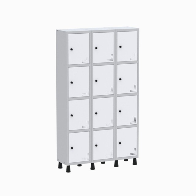 Armário Locker Guarda Volume Aço Light 12 Portas 103,5x179,5cm Cinza/Branco