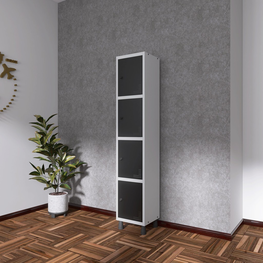 Armário Locker Guarda Volume Aço Light 4 Portas 34,5x179,5cm Cinza/Preto