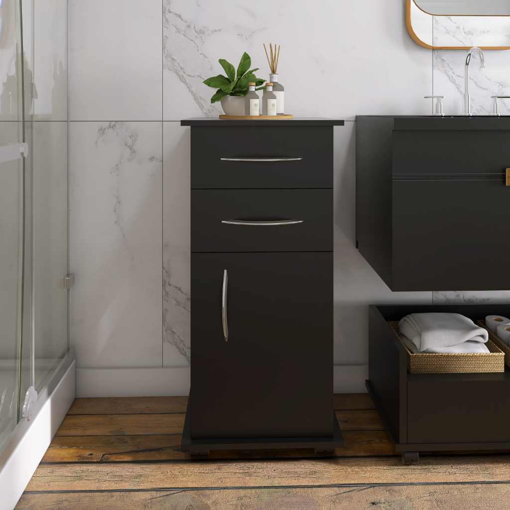 Armário Móvel 1 Porta 2 gavetas p/ Utensílios Preto/Branco