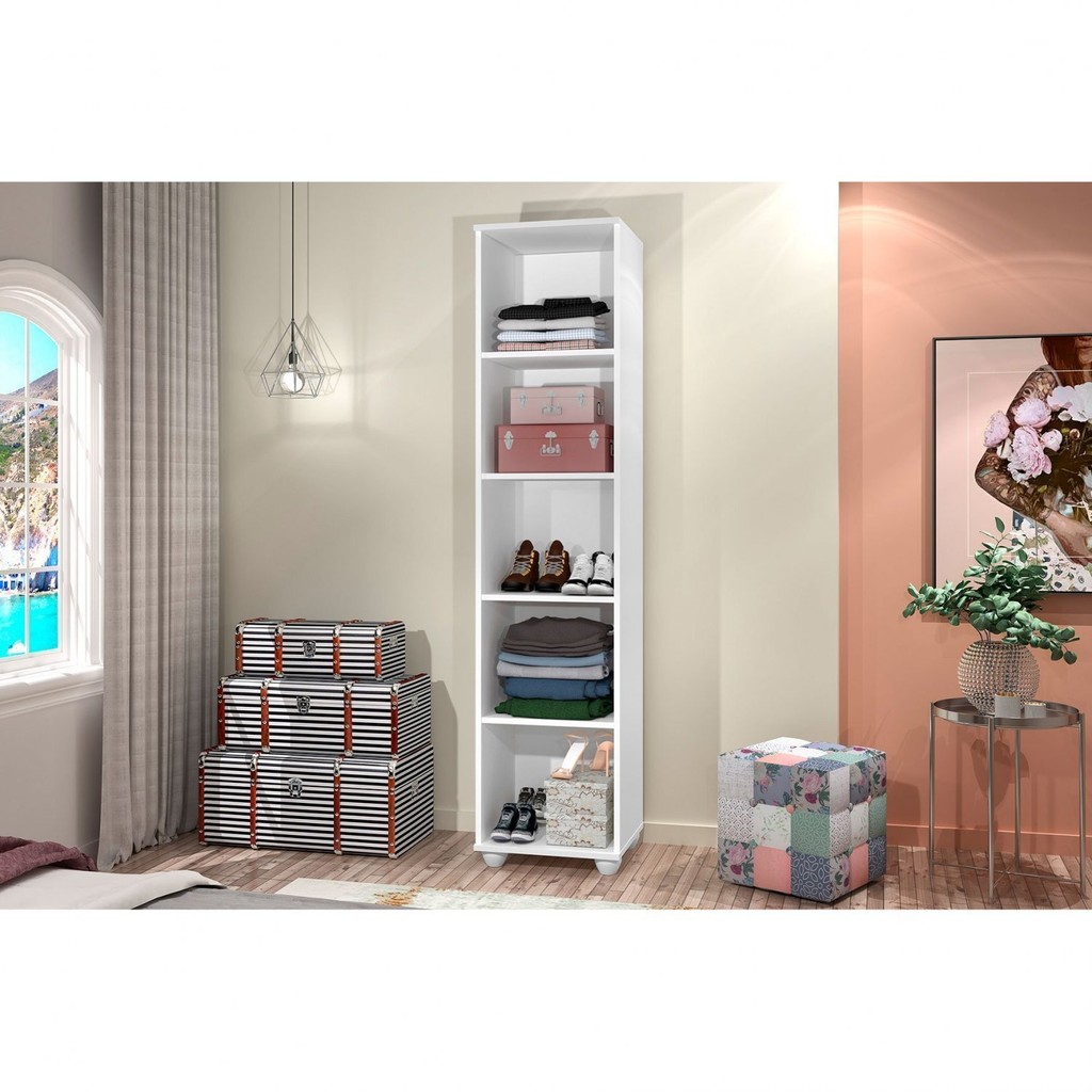 Armário Multiuso 1 Porta 5 Prateleiras Sofia Branco