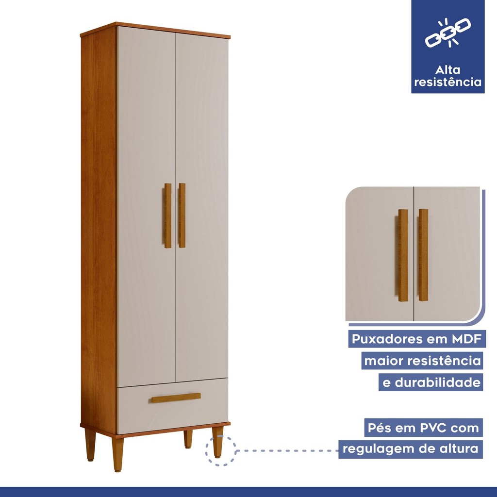 O Armário Multiuso com 2 Portas é o aliado perfeito para quem busca organização na cozinha ou em qualquer ambiente da casa. Suas duas portas e uma gaveta proporcionam o espaço ideal para armazenar utensílios, roupas ou até produtos de limpeza, mantendo tudo organizado e acessível. Compacto e versátil, esse armário combina praticidade e elegância para deixar seu espaço ainda mais funcional. Pode usá-la como sapateira? Claro, basta usar a criatividade e poderá usá-la em diversos ambientes. E pode ser um multiuso para área de serviço? Sim, as prateleiras espaçosas permitem usar de várias formas. Estilo: Moderno Peso (kg): 41 Garantia: 06 Meses Altura (cm): 1.965 Acabamento: Pintura UV Largura (cm): 60 Possui Pés: Sim Possui Chave: Não Possui Portas: Sim Tipo de Porta: Bater Altura dos Pés: 17 Pés Reguláveis: Sim Possui Rodízio: Não Suporta Até (kg): 60 Tipo de Gaveta: Externa Possui Espelhos: Não Profundidade (cm): 34 Escala de Brilho: Semi-Fosco Gaveta com Chave: Não Material dos Pés: Plástico Material da Porta: MDP Material do Fundo: HDF/MDF Acabamento dos Pés: Pintura Ambiente Principal: Cozinha Espessura da Chapa: 15 Material da Gaveta: MDP Material Principal: MDP Possui Prateleiras: Sim Possui Tulha/Cesto: Não Resistente à Chuva: Não Acabamento da Porta: Pintura UV Material do Puxador: MDF Porta com Fechadura: Não Sapatas Niveladoras: Sim Acabamento da Gaveta: Pintura UV Material da Estrutura: MDP Material da Prateleira: MDP Peso Máximo por Gaveta: 10 Acabamento da Prateleira: Pintura UV Tipo de Armário Multiuso: Armário Multiuso Tipo de Puxador da Porta: Externo Escala de Brilho da Porta: Semi-Brilho Tipo de Puxador da Gaveta: Externo Escala de Brilho da Gaveta: Semi-Brilho Peso Máximo por Prateleira: 20 Tipo de Corrediça da Gaveta: Metálica Telescópica Material do Puxador da Porta: MDF Possui Suporte para Vassoura: Não Material do Puxador da Gaveta: MDF Acompanha Manual de Instalação: Sim Escala de Brilho da Prateleira: Semi-Fosco Tipo de Dobradiça/Corrediça da Porta: Pressão O Módulo Pode ser Utilizado Individualmente: Sim Marca: Kaiki Móveis Cor Flex: Não Cor Interna: Nature Cor: Nature/Off White Cor do Produto: Nature/Off White Itens Inclusos: 1 Multiuso e manual de montagem. Cor Predominante: Marrom Quantidade de Prateleiras: 05 Prateleiras Quantidade de Gavetas: 01 Gaveta