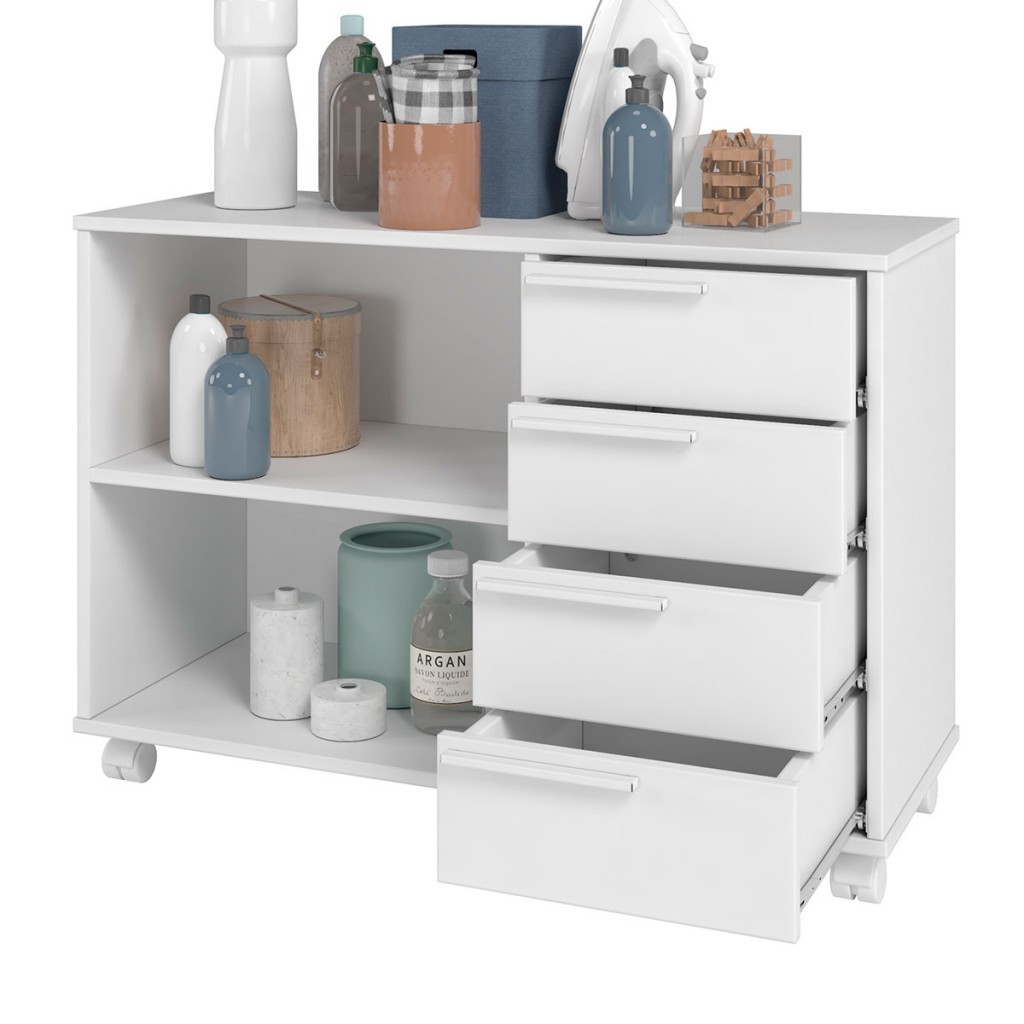 Armário Multiuso 4 Gavetas 1 Prateleira Branco 440 - Pnr Móveis