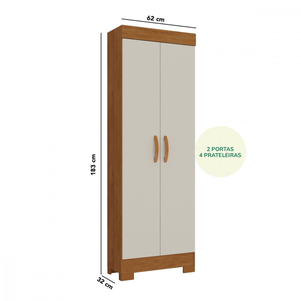 O Armário Multiuso Atualle Uruguay 2 Portas é a solução ideal para quem precisa de organização e praticidade no dia a dia. Com design moderno e acabamento em Nogueira Madeirado combinado com Natura Off White, ele se adapta facilmente a diferentes ambientes da casa. Fabricado em MDP de alta qualidade, o móvel possui 4 prateleiras internas, oferecendo ótimo espaço para armazenar utensílios, alimentos, produtos de limpeza, roupas ou objetos diversos. As portas de bater com dobradiças metálicas garantem maior durabilidade, enquanto os puxadores em PVC na cor bronze trazem um toque elegante ao móvel. Perfeito para uso em cozinhas, lavanderias, áreas de serviço, escritórios ou despensas. MEDIDAS DO PRODUTO (MONTADO) Altura: 1,83 m Largura: 0,62 m Profundidade: 0,32 m FICHA TÉCNICA Marca: Atualle Modelo: Uruguay Tipo: Armário Multiuso Estrutura: MDP Portas: 2 portas de bater Puxadores: PVC cor bronze Dobradiças: Metálicas 25 mm Prateleiras: 4 Capacidade de peso total: até 20 kg Acabamento pintura: Nogueira Madeirado Semi Brilho Natura Off White Brilho Garantia: 3 meses Montagem: Necessita montagem INDICADO PARA - Cozinhas e despensas - Lavanderias e áreas de serviço - Escritórios e ambientes compactos - Quem busca organização com bom aproveitamento de espaço Imagens meramente ilustrativas. Objetos de decoração que aparecem nas imagens não acompanham o produto. As cores podem variar conforme iluminação do ambiente e configuração do monitor. Antes da compra, confira atentamente as medidas do produto e do espaço disponível. AVISO! Esclarecemos que a Opção Móveis se responsabilizará pela entrega dos produtos adquiridos até a porta de entrada ou portaria do endereço indicado, ou seja: é de total responsabilidade do cliente a montagem, desmontagem e instalação do produto adquirido. Para evitar futuros desagrados ou imprevistos com a entrega, também é necessário que o cliente confira as dimensões do produto escolhido, antes de finalizar a compra, devendo certificar-se de que a mercadoria passará normalmente por elevador, porta, escada e corredor