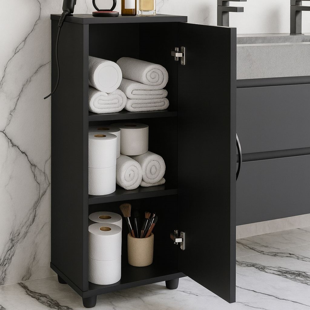 Armário Multiuso com Pézinho, Organizador com 1 Porta e Prateleiras Internas para Banheiro