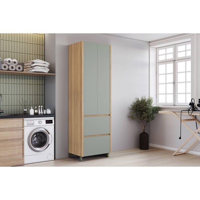 Armário Multiuso Lavanderia Marquesa c/ 2 Portas e 2 Gavetas 70cm Nature/Verde - Nesher