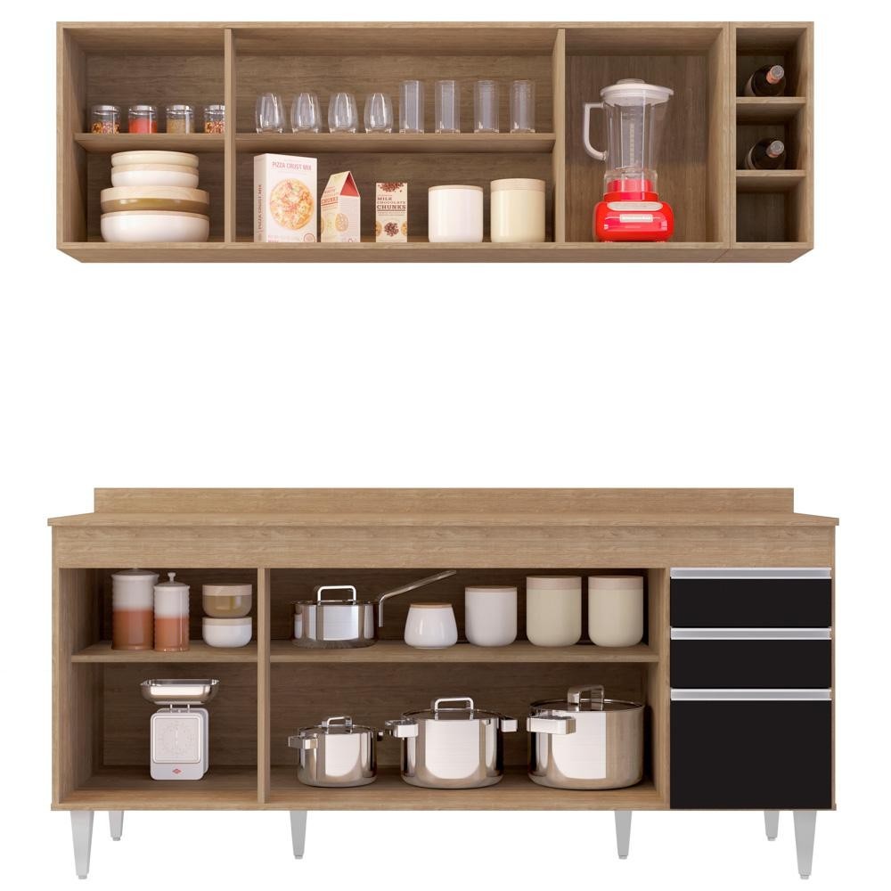 Armário Nevada e Balcão 180cm com Tampo Dallas Castanho/Pto - Lumil