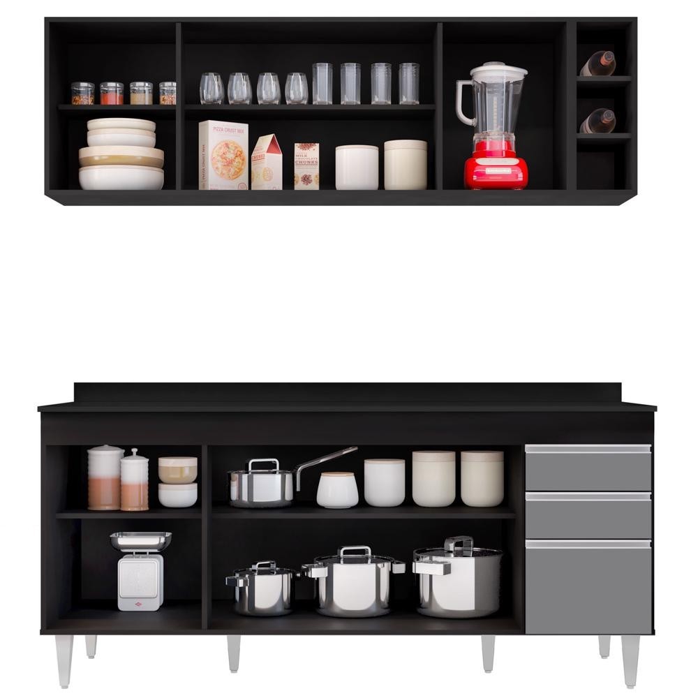 Armário Nevada e Balcão 180cm com Tampo Dallas Preto/Cinza - Lumil