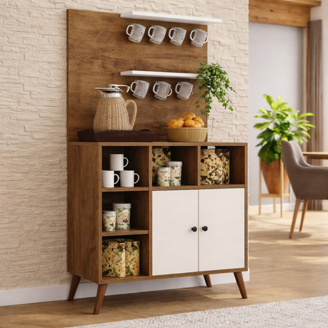 Armario Organizador Cantinho do Café Multiuso 2 Portas Nichos Suporte Xícaras Cozinha Gourmet
