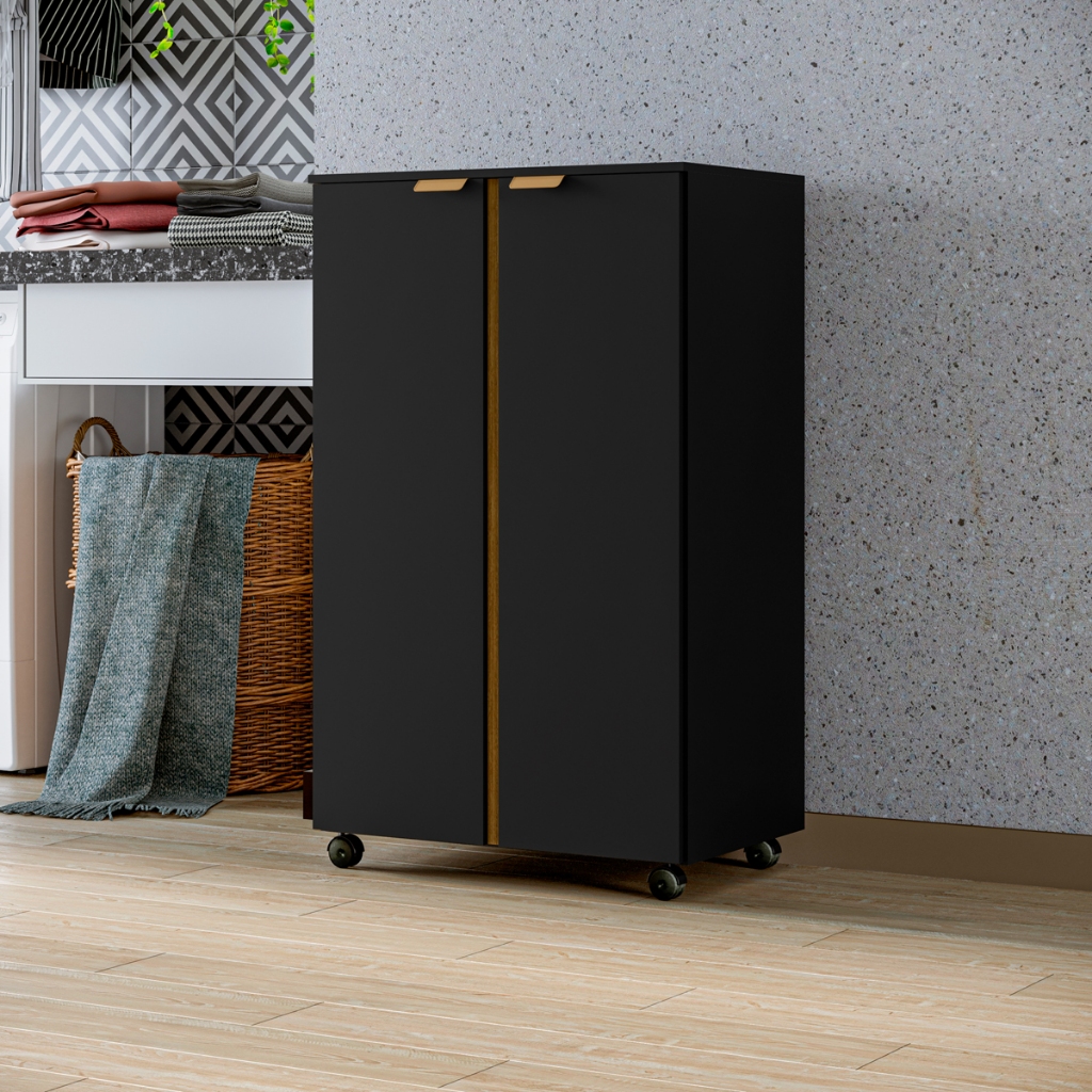 Armário Organizador Multiuso com rodizio e prateleiras flex. inteiro na cor ou detalhe em outra cor