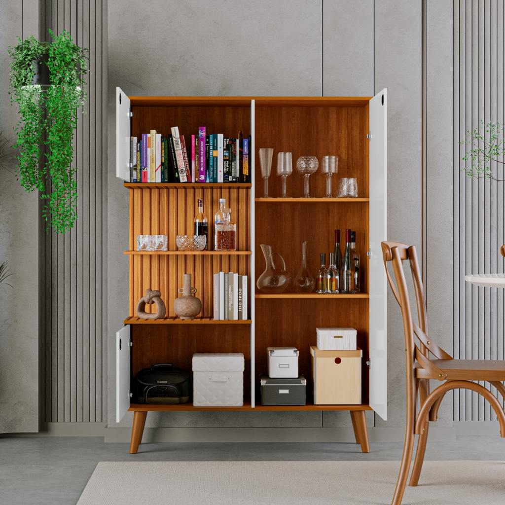 Armário para cozinha com 3 portas e prateleira de sala organizador branco com pés palito pintura 3D