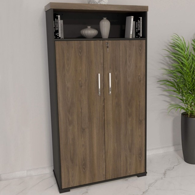 Armário para Escritório 2 Portas Charuto/Preto - Artany Móveis