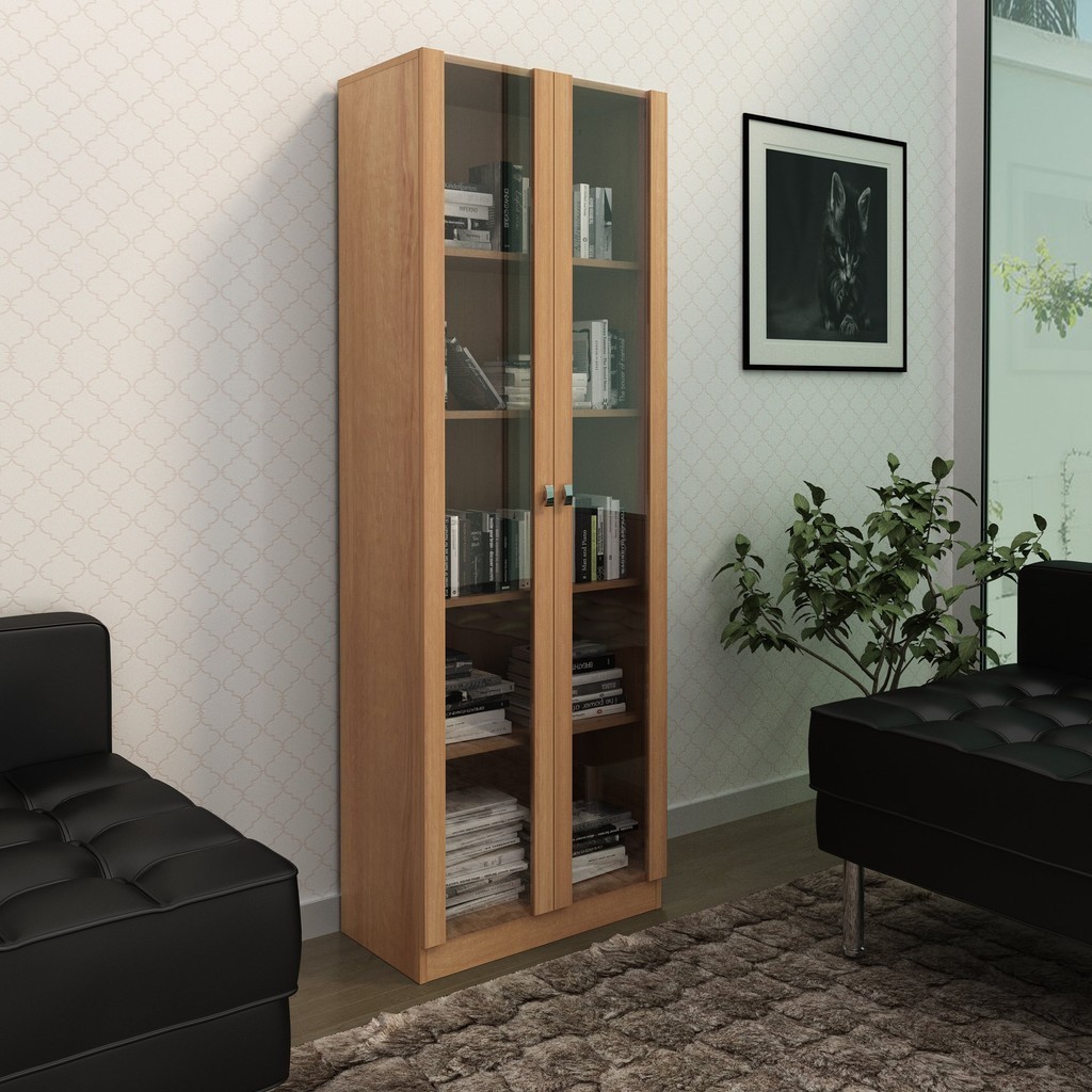 Armário para Escritório com 2 Portas de Vidro e 5 Prateleiras ME4115 Amendoa