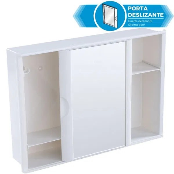 Armário Plástico Versátil com Porta de Correr 29x41x10cm de Embutir e Sobrepor Astra Branco 1 O Armário Plástico Versátil com Porta de Correr da Astra possui porta de correr com espelho que desliza em todo o armário, otimizando o espaço. O armário é funcional, já vai montado e pode ser instalado embutido ou sobreposto à parede. Características Possui porta de correr, otimizando o espaço. Espelho que desliza em todo o armário. Divisão interna com porta-escova e prateleiras embutidas para armazenar os objetos do dia a dia. Leve, resistente e de fácil limpeza. Pode ser instalado embutido ou sobreposto à parede. Recomendações e uso Limpeza - Tecido macio, seco ou levemente umedecido. Informações Técnicas MODO DE INSTALAÇÃO Sobrepor e Embutir MATERIAL PS ACABAMENTO Fosco ABERTURA DA PORTA Porta de Correr QTDE DE PORTAS 1 Porta (s) ACOMPANHA ESPELHO Sim DIMENSÃO DO PRODUTO (CxLxA) 40,8 x 9,5 x 28,4 cm ESPELHO INTERNO Não QTDE PRATELEIRAS 4 Prateleiras TIPO MATERIAL Plástico MANUAL Sim GARANTIA 3 meses ITENS INCLUSOS 1 kit fixação INFORMAÇÕES As cores do produto podem sofrer variações de acordo com o dispositivo, a iluminação do ambiente ou a sua percepção visual. Fotos meramente ilustrativas. Os objetos que compõe a foto ambientada não acompanham o produto.