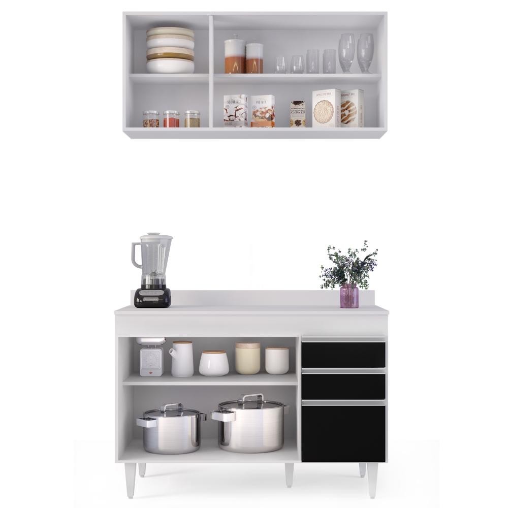 Armário Virgínia e Balcão com Tampo Michigan 120cm Branco/Preto - Lumil