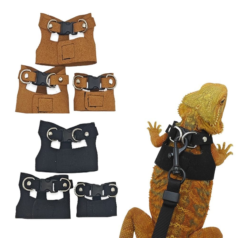 Arnês De Couro Superfibra Para Répteis , Colete Ajustável De 3 Tamanhos , Corda De Tração Lagarto , Macio , Preto , Marr