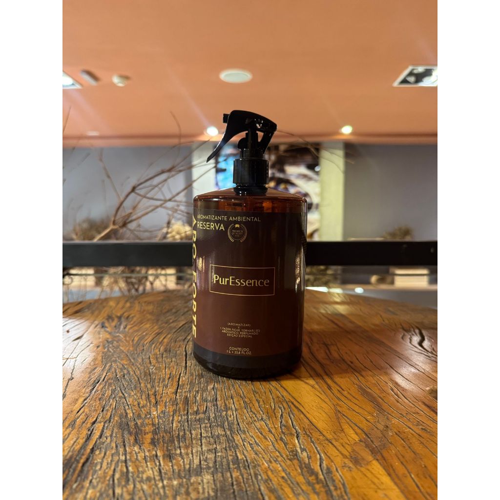 O Aro Forte PurEssence 1L é um aromatizante ambiental extra forte, desenvolvido para quem busca um perfume realmente marcante, concentrado e de alta fixação. Ele perfuma rapidamente o ambiente e mantém o aroma presente por horas, garantindo uma sensação contínua de limpeza, aconchego e sofisticação. Com fórmula potente e embalagem profissional de 1 litro, o Aro Forte é a escolha ideal para perfumar casas, lojas, espaços comerciais, estúdios e recepções, oferecendo um nível de intensidade muito superior aos sprays tradicionais. ✨ Diferenciais do Aro Forte Perfume extra forte, concentrado e duradouro Alta fixação no ambiente Ideal para espaços amplos e ambientes que pedem aroma marcante Embalagem âmbar premium de 1L com borrifador profissional Rendimento superior e excelente custo-benefício Produto pronto para uso 🌿 Sensação no Ambiente A fragrância PurEssence preenche o ambiente com um aroma elegante e envolvente, criando uma atmosfera que transmite organização, cuidado e bem-estar imediato. 💡 Como Usar Borrife de 1 a 3 vezes, conforme a intensidade desejada. Para locais maiores, reaplique quando necessário. 📌 Indicado para Lojas e showrooms Consultórios e clínicas Estúdios, salões e barbearias Casas e apartamentos Ambientes decorados e recepções