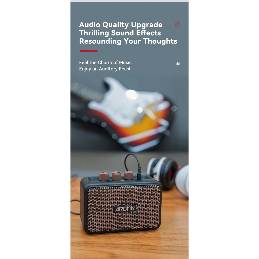 AROMA AG-04 5W Altifalante para guitarra eléctrica Altifalante de secretária Limpo e Overdrive 2 efeitos sonoros Suporte