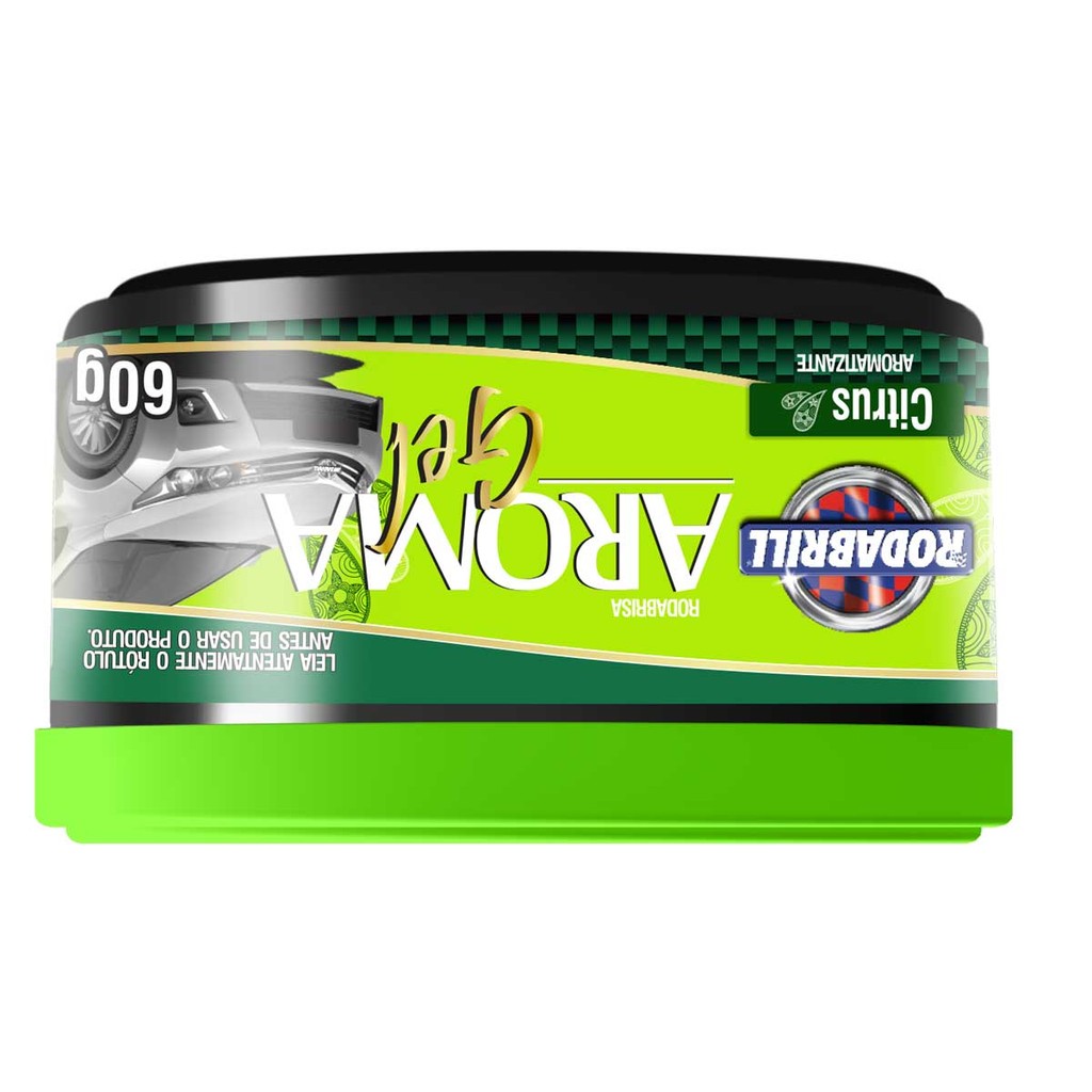 Aroma Gel Citrus 60g - Rodabrill O Rodabrisa Aroma Gel é um aromatizante de alta performance desenvolvido para perfumar seu carro por mais tempo. Aromas: Carro Novo, Citrus, Lavanda, Marine, Morango e Tutti Frutti. Composição: Nonilfenol Etoxilado, Espessante, Umectante, Sequestrante, Conservante, Corante, Fragrância e Veículo. Validade: 36 meses a partir da data de fabricação.