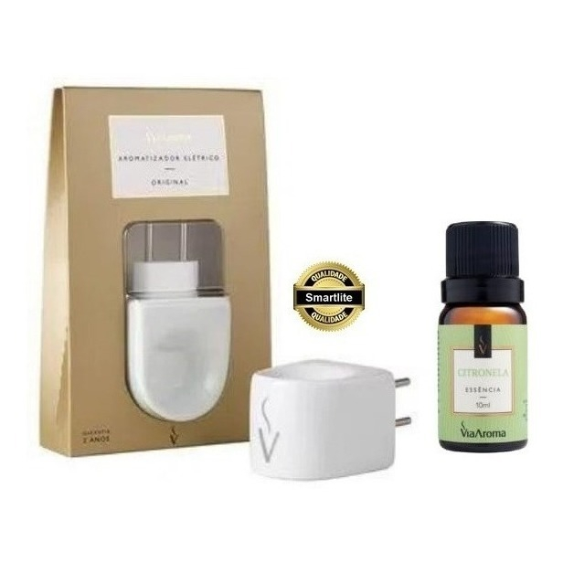 AROMATIZADOR DIFUSOR ELÉTRICO PORCELANA + ESSÊNCIA VIA AROMA O Aromatizador Elétrico Original é um aparelho feito de porcelana desenvolvido e fabricado pela Via Aroma, que viabiliza o uso de de essências e óleos essenciais com praticidade, economia e segurança. A Essência Via Aroma Lavanda possui aroma floral e propriedades estabilizantes que trazem ao ambiente harmonia, frescor e tranquilidade. Ideal para deixar o ambiente agradavelmente perfumado, equilibrado e com sensação de limpeza. A Essência Via Aroma Bamboo possui um aroma equilibrado de folhas verdes com toque cítrico do bambu. Alegre e intenso proporciona sensação de bem-estar e harmonia, sendo ideal para causar no ambiente uma atmosfera leve e refrescante. MODO DE USO: Ao plugar o aparelho na tomada, deve-se adicionar 15 gotas de essência aromática ou óleo essencial Via Aroma para que o ambiente (médio de 30m²) mantenha-se aromatizado por até 4 horas. ORIENTAÇÕES: Para realizar a higienização do seu Aromatizador Elétrico Via Aroma é simples: após cada uso, retire o aparelho da tomada e utilize papel toalha ou pano úmido para limpar o excesso, feito isso estará pronto para o uso de uma nova essência.