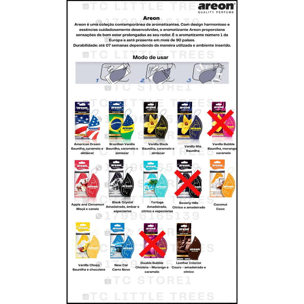 Compre com quem é referência. TC Little Trees - Desde 2016. Somos loja indicada Shopee com mais de 10 mil avaliações. Trabalhamos apenas com produtos originais e de alto padrão de qualidade. Confira nossos outros anúncios com maiores quantidades. Little Trees Produto original Importado dos Estados Unidos Areon Produto original Importado da Bulgária *Modo de utilizar: Abra a embalagem plástica pela parte superior (linha pontilhada), retire o elástico e pendure no local desejado. Vá retirando o produto aos poucos da embalagem plástica uma vez por semana para que a intensidade do aroma fique regular e a durabilidade seja maior. areon, little trees, areonbrasil, litle trees, littletrees, areon smile, areon gold, american dream, vanilla pride, brazilian vanilla, aromatizante bandeira, estados unidos, aromatizante brasil, vip black king, vanilla, bubble gum, chiclete, black ice, black crystal, vanilla black, smile, blue eye, melancia, carro novo, new car, morango, tortuga, verano azul, bon voyage, beverly hills, tclittletrees