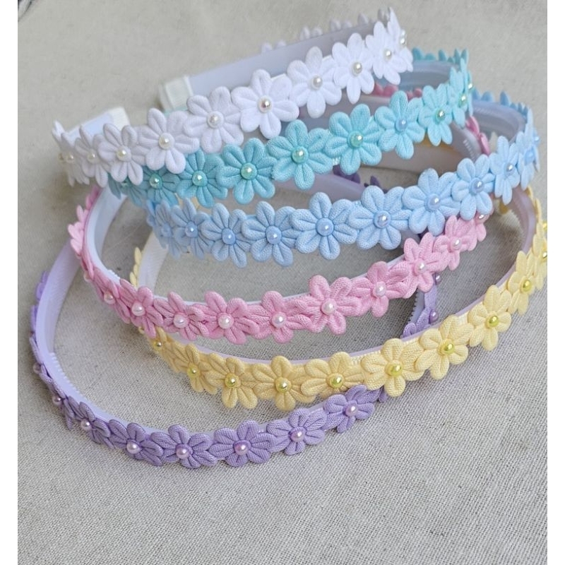 Arquinho/Tiara Florezinhas e meia Pérola , arco flor tiara escolar, verão tiara brasil
