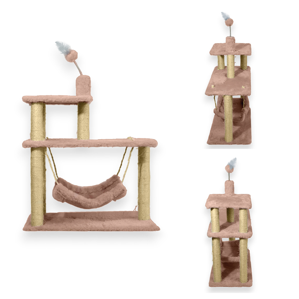 Na Miupet, você encontra uma variedade de produtos com uma alta qualidade incluindo arranhadores feitos de sisal para atender às necessidades e ao estilo de vida do seu gatinho. De brinquedos divertidos a camas confortáveis, arranhadores e acessórios, temos tudo o que você precisa para o seu companheiro de quatro patas. Não se esqueça que o arranhador é muito importante para a saúde dos nossos gatinhos, pois faz parte da natureza deles. Além disso, o arranhador ajuda a promover brincadeiras que além de gastar a energia, trazem qualidade de vida aos nossos amigos felinos! Nesse pacote você recebe: 3 tubos de Sisal tipo Macho 3 tubinhos de sisal tipo Fêmea 1 tubinho de pelúcia tipo macho com brinquedo 7 parafusos tipo PHS - 1/4 x 2 1/4 1 base pequena revestida em pelúcia alta com bolinha com pena na ponta 2 plataformas revestidas em pelúcia alta 1 rede de pelúcia ESPECIFICAÇÕES TÉCNICAS: Medidas totais do produto Altura 80cm x Largura 31cm x Comprimento 62cm Tamanho da base pequena Largura 37cm x Comprimento 34cm MATERIAL UTILIZADO Madeira MDF Canos de PVC 5cm de diâmetro Corda de sisal biodegradável e não poluente Tecido de pelúcia tipo alta e antialérgica