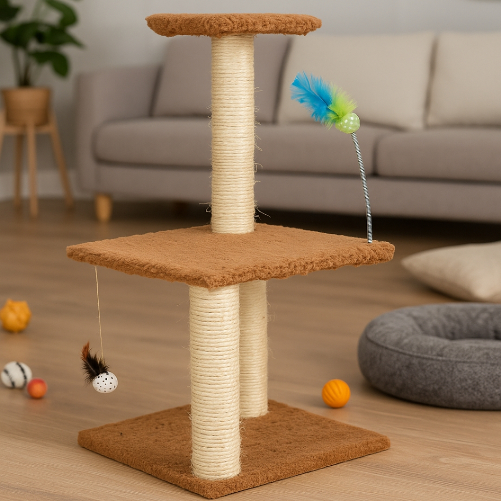 Arranhador Pet com 3 Andares Brinquedos e Estrutura Estável para Gatos