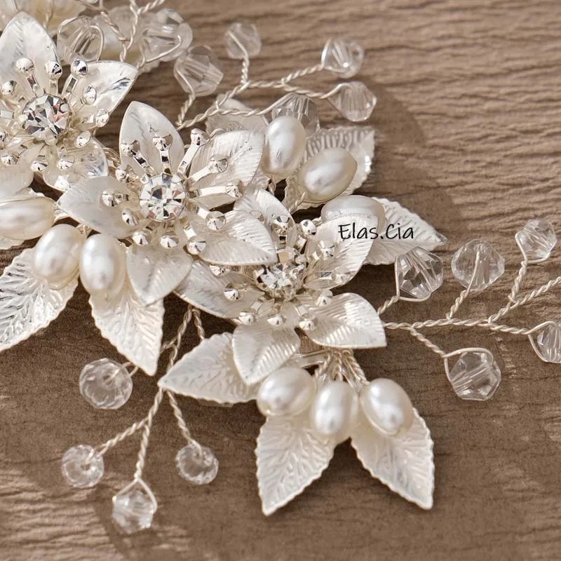 Arranjo Cabelo Noiva Grinalda Presilha Flores Prata Casamento Festa - Elas.Cia