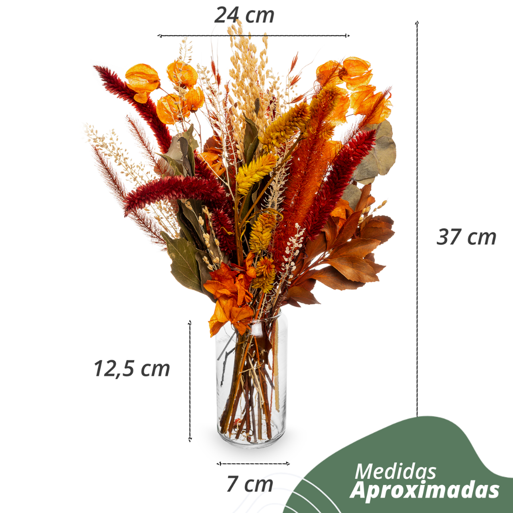 Arranjo de Flores Secas com Eucalipto, Vaso Terracota e Vinho, Decoração Rústica e Presente Especial com Vaso de Vidro - 37 CM DE ALTURA Acompanha Arranjo + Vaso de Vidro * Itens usados para compor a foto ambientada não inclusos. ------------------------------------------------------ DIMENSÕES DO PRODUTO - Dimensões aproximadas (Vaso + Arranjo): altura 37 cm x largura 24 cm - Vaso de vidro: 12,5 cm de altura x 7 cm de largura ------------------------------------------------------ CUIDADOS COM SEU ARRANJO DESIDRATADO Para manter a beleza e a durabilidade do seu arranjo por mais de 4 anos, siga estas recomendações: - Evite exposição direta à luz solar - Mantenha em ambientes secos (longe da umidade) - Não expor ao calor ou excesso de claridade ------------------------------------------------------ PRINCIPAIS DÚVIDAS - Arranjo feito com flores e plantas 100% naturais; - Fácil manutenção, não precisa de cuidados, nem água nem luz; - Criados para combinar com diferentes ambientes e ocasiões; ------------------------------------------------------ OBSERVAÇÕES - Por serem naturais e artesanais, podem ocorrer leves variações de cor, forma, tamanho e textura. - As imagens e vídeos contidos neste anúncio foi desenvolvido para a Art Encantos, ou seja sua cópia ou reprodução é proibida sob penalidade de banimento de quem copiar. ------------------------------------------------------ Flores desidratadas, flores secas, buque de flores secas, buque de flores desidratadas, arranjo de flores secas, arranjo de flores desidratadas, buque terracota, buque roxo, buque lilás