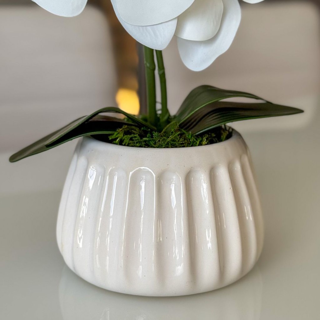 Arranjo de Orquídea Permanente Branca ou Rosa com Vaso de Cerâmica Branco Decorativo