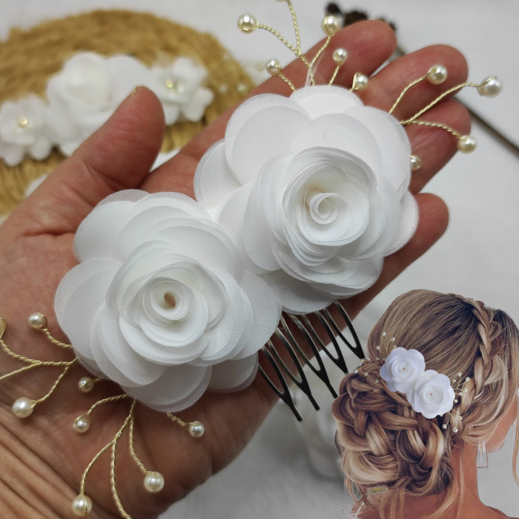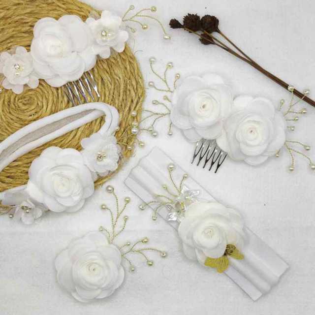 Arranjo flor branca na presilha para penteados de noiva / faixa de bebê batizado daminha debutante