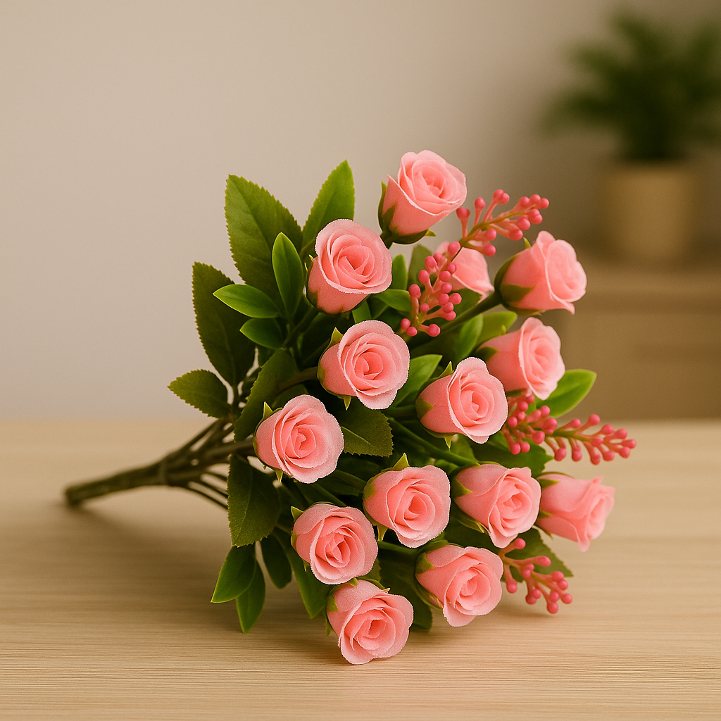 Roseira Asiática Artificial Buquê 18 Flores Premium Acabamento perfeito, realismo e elegância para qualquer decoração A Roseira Asiática Artificial em buquê com 18 flores premium é a escolha ideal para quem busca sofisticação, beleza e praticidade. Produzida com alto padrão de qualidade, ela reproduz com fidelidade o visual das rosas naturais, apresentando pétalas bem definidas, cores vivas e folhagens realistas. Seu acabamento premium garante um buquê volumoso, elegante e durável, perfeito para compor arranjos decorativos refinados sem a necessidade de manutenção. Características do Produto Buquê com 18 flores artificiais premium Modelo Roseira Asiática, conhecido pelo alto realismo Pétalas em tecido de alta qualidade com toque macio Flores bem formadas, com excelente definição e acabamento Folhagens verdes realistas que valorizam o arranjo Hastes flexíveis, permitindo ajustar o formato do buquê Produto resistente, durável e de longa vida útil Benefícios Não murcha, não precisa de água e não perde a beleza Ideal para decoração permanente Mantém aparência impecável por anos Excelente custo beneficio Fácil de limpar e manusear Pode ser usado sozinho ou em arranjos maiores Onde Usar Salas de estar e jantar Quartos e aparadores Escritórios, recepções e consultórios Decoração de eventos, festas e casamentos Centros de mesa e arranjos decorativos Vitrines e ambientes comerciais Dicas de Uso Combine com vasos de cerâmica, vidro ou metal para um visual sofisticado Ajuste as hastes para criar mais volume e naturalidade Ideal para montar arranjos personalizados Pode ser usado com espuma floral para fixação em vasos A