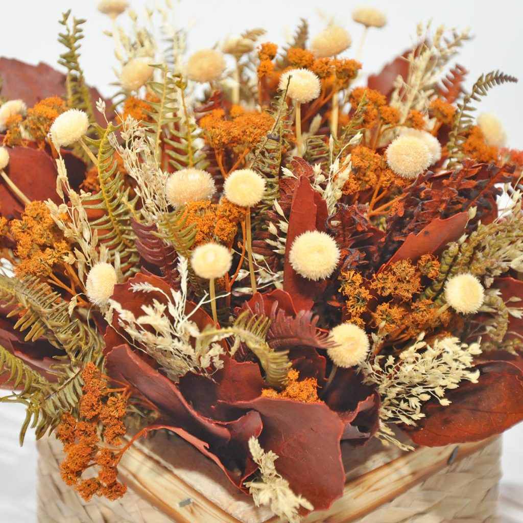 Tamanho próximo: 16A x 16C x 16Lcm Flores: mix de flores naturais desidratadas em tons terracota CASO AS FLORES DOS NOSSOS ARRANJO ESTIVEREM FORA DE ÉPOCA, TROCAREMOS POR FLORES SEMELHANTES, TANTO NA APARÊNCIA QUANTO NA COR. POR SE TRATAR DE PRODUTOS NATURAIS, AS MESMAS FLORES PODEM SOFRER MUDANÇAS NO TAMANHO E NA COLORAÇÃO. ALGUNS VASOS PODEM SOFRER ALTERAÇÕES NAS CORES, POIS CADA REMESSA SOFRE INTERFERÊNCIAS NA PRODUÇÃO. Tendência em Decoração: Flores desidratadas são a nova sensação no design de interiores, combinando praticidade e estilo. Transforme qualquer ambiente com este arranjo que une o charme da natureza à modernidade do design. Nossos arranjos e buquês são criações exclusivas de nossa florista. - Durabilidade Incomparável: Flores que duram anos sem perder a cor ou forma. - Manutenção Zero: Não precisa de água nem sol, perfeito para qualquer ambiente. - Embalagem Protetora: Cada buquê é embalado com materiais de alta qualidade para garantir que chegue intacto e deslumbrante, superando as expectativas dos nossos clientes. - Estilo Rústico Sofisticado: O vaso de madeira rústico adiciona um toque de elegância e aconchego ao espaço. - Feito à Mão: Cada peça é artesanal, garantindo exclusividade e qualidade superior. - Versatilidade na Decoração: Ideal para salas de estar, escritórios, e até mesmo para presentear. Como posso decorar minha casa com um arranjo BEAUTÉ? Você pode usar nossos arranjos para decorar sua casa em ambientes internos. Nossa paleta de cores permite combinar com qualquer decoração. Como posso cuidar do meu arranjo BEAUTÉ? Evite usá-los em ambiente externo ou com muita umidade, dessa maneira eles podem durar por anos. Nossos buquês podem ser usados em qualquer tipo de vaso, mas lembre-se, não precisa colocar água. Caso acumule poeira nele, utilize um espanador com muito cuidado, ou um pano seco. Meu arranjo não vai sofrer danos no envio? Nós fizemos muitos testes para identificar a melhor maneira de enviar seu arranjo. Nesse momento todo cuidado é pouco. Mesmo assim, acidentes podem acontecer, e se isso ocorrer, por favor, tire uma foto do seu produto danificado e nos envie que vamos resolver, e se possível, sempre abra na frente do entregador para garantir que não há danos. Se tiver, não aceite a entrega.