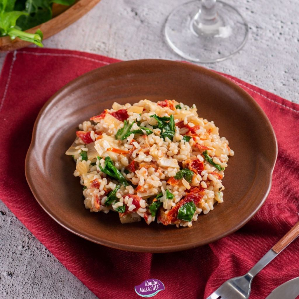 Massa Konjac Arroz 270g 9 Calorias - Konjac é a alternativa ideal para pessoas que buscam uma alimentação saudável e querem desfrutar de uma refeição saborosa à base de massas e arroz. Este novo conceito de alimentação funcional permite comer bem e saciar a fome sem acumular calorias, graças ao seu baixo teor calórico. Características do produto: - 9 calorias em cada 100g; - 8g de fibra Natural (glucomanano); - 0g de hidratos de carbono; - 0g sódio; - 0g de gordura; - Não contém glúten; - Não contém lactose. Alimento 100% ORGÂNICO DE ORIGEM VEGETAL A Massa Konjac MF é o substituto perfeito para pratos de massa tradicionais. Com apenas 9 calorias em cada 100 gramas e ZERO de carboidratos, permite desfrutar de um prato de massa sem preocupações com a dieta. Com a Massa Konjac MF, é possível criar pratos simples, usar em saladas ou receitas com variados tipos de molhos, com todos os ingredientes de escolha, sem necessidade de cozimento prévio, pois a massa já vem pronta para consumo. Para preparar, basta acrescentar os ingredientes desejados à massa de Konjac MF e aquecer por alguns minutos no forno ou micro-ondas. A massa de konjac absorve os sabores dos ingredientes utilizados no preparo quanto mais tempo estiver em contato com eles. A textura da massa se mantém mesmo após cozinhar por um longo período, permitindo que fique ao fogo pelo tempo necessário para preparar a receita. Sugestão: Personalize a refeição ao seu gosto, com opções 100% vegetarianas ou adicionando fontes de proteína animal, verduras, temperos, ervas, queijos, molhos ou outros ingredientes de preferência.