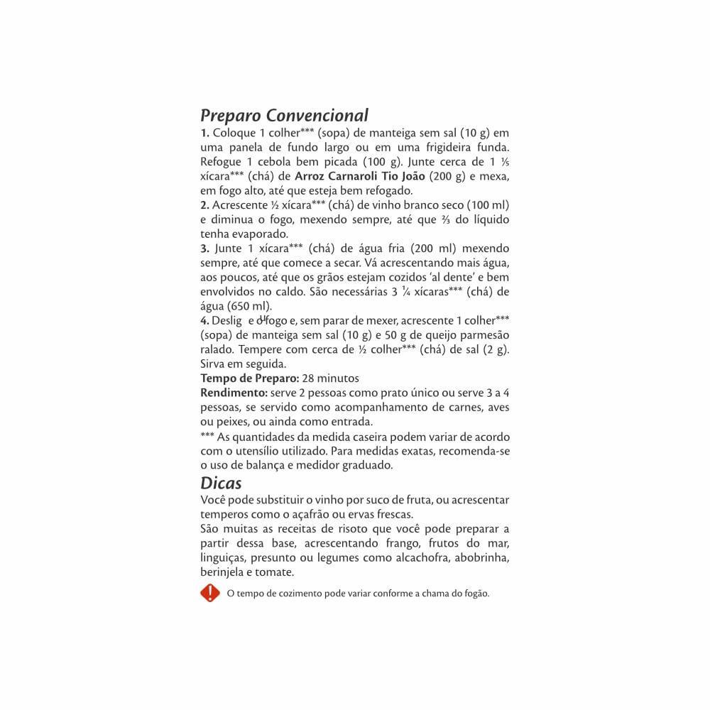Tio João Variedades Mundiais Arroz Carnaroli é um produto que oferece aos brasileiros a possibilidade de degustar grãos que são tradicionais em outros países oferecendo variedades perfeitas para o preparo de pratos inspirados na culinária internacional, neste caso, pratos da culinária Italiana.Validade: até 12 meses após a data de fabricação.