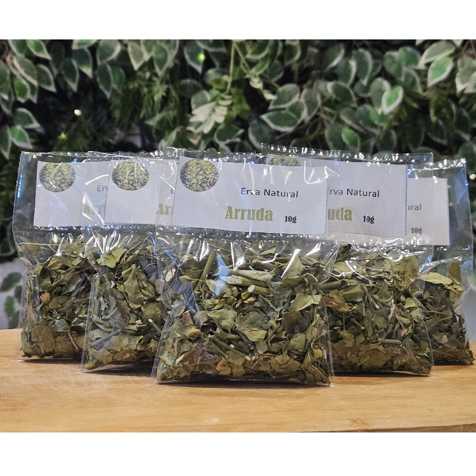 Arruda: Chá e Banho Contém 10g Erva Seca de Arruda A arruda é uma planta medicinal cujo nome científico é Ruta graveolens e que pode ser utilizada para auxiliar no tratamento de varizes, na infestações por parasitas, como piolhos e pulgas, ou no alívio das dores menstruais, já que pode atuar nos vasos sanguíneos, além de ter propriedades cicatrizantes, vermífuga e analgésica. Dica para fazer os chás: Adicionar 1 xícara (250ml) de água fervente sobre 1 colher de chá (5g) da erva, tampar, deixar em repouso por 5 minutos e coar. Então, estará pronto para ser consumido. Dica para Fazer os Banhos: ferva 2 litro de água; Na sequência, coloque as ervas secas dentro da panela, desligue o forno e tampe a infusão com um prato. Após 5 minutos, coe e jogue do pescoço para baixo após o seu banho de higiene.