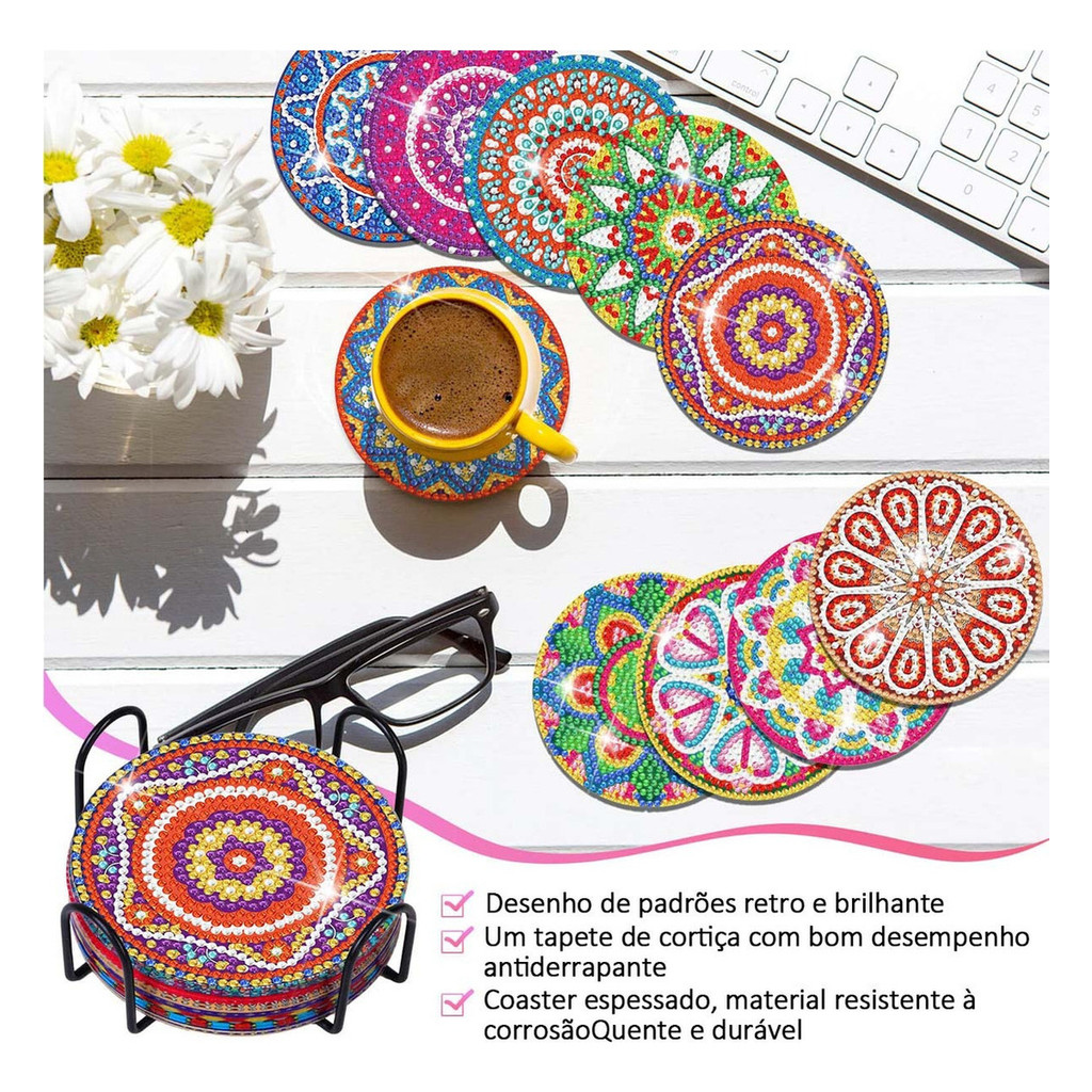 Artesanato Pintura Diamante Diy Porta Copos 10 Kit Mandalas