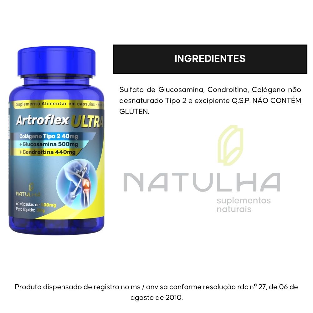 ArtroFlex ULTRA ( Glucosamina, Condroitina e Colágeno Tipo 2) 60 cápsulas - Natulha