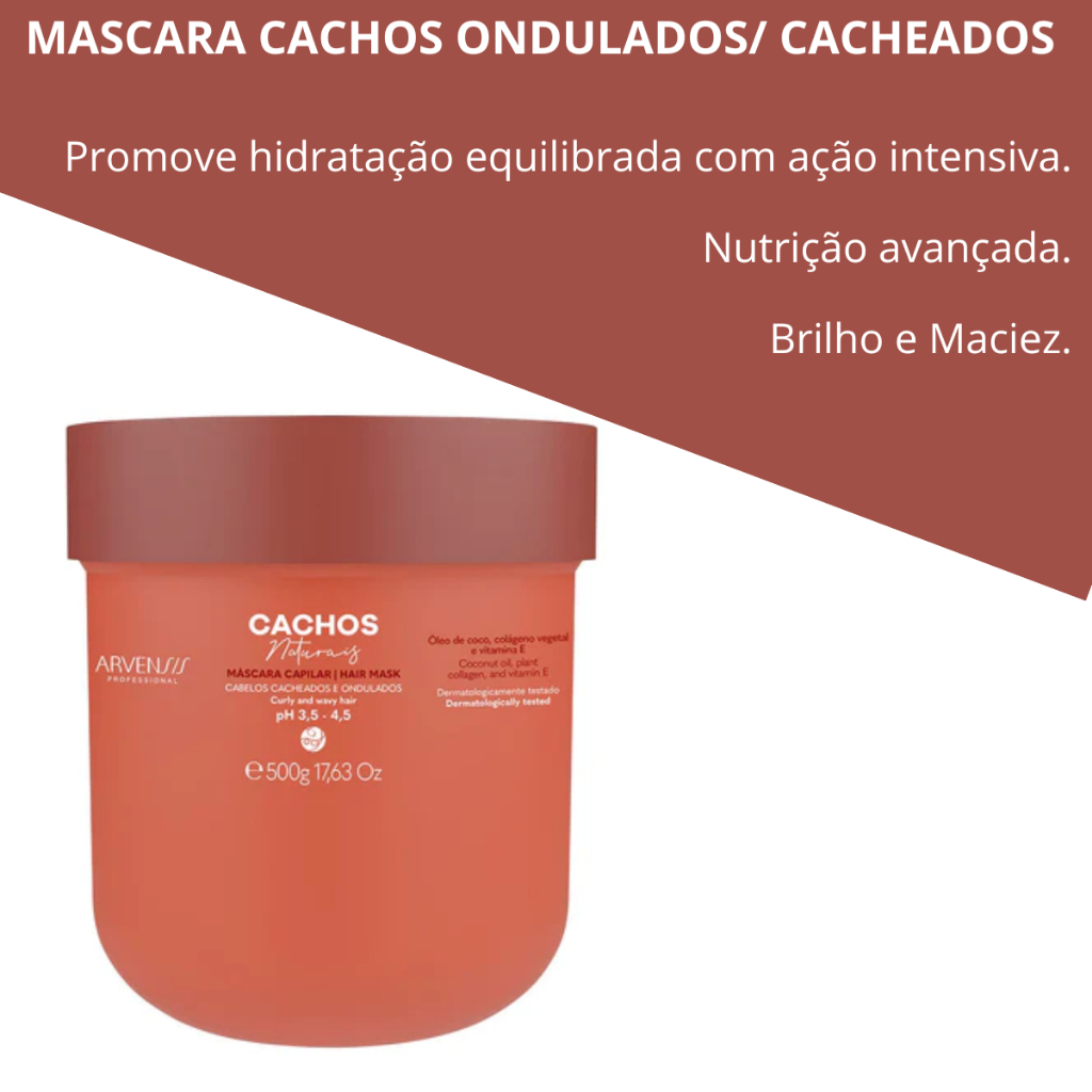 🌟 Máscara Cachos Ondulados/Cacheados 500 G - Arvensis 🌟 Dê vida aos seus cachos com a Máscara Cachos Ondulados/Cacheados da linha Cachos Naturais da Arvensis! Uma poderosa aliada para hidratar, nutrir, ativar e definir seus fios, proporcionando cabelos macios, flexíveis e luminosos. ✨ 🌱 Principais Características: Hidratação Profunda 💧: Enriquecida com Óleo de Coco e Colágeno Vegetal, proporciona hidratação intensiva e nutrição à fibra capilar. Restauração da Elasticidade 🌀: Restaura a elasticidade dos fios, conferindo maior maleabilidade e resistência. Nutrição Avançada 🌿: Fornece aminoácidos e proteínas essenciais para cabelos mais nutridos, brilhantes e com vitalidade. Indicação 🔹: Especialmente para cabelos ondulados e cacheados (curvaturas 2A, 2B, 2C e 3A), oferecendo definição e cuidado personalizado. pH Balanceado 🔬: Com pH entre 3,5 e 4,5, ajuda a manter o equilíbrio dos fios e do couro cabeludo durante o uso. ✨ Eleve o cuidado dos seus cachos com Arvensis - hidratação, nutrição e definição em um único produto!