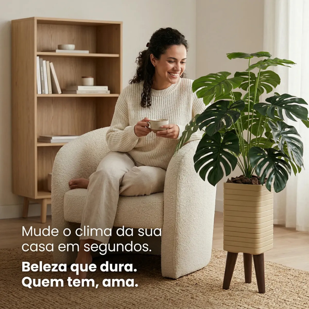 Transforme instantaneamente qualquer ambiente da sua casa ou escritório com a nossa Planta Tropical Premium. Criada para os amantes da estética e do bom gosto, esta peça une a beleza orgânica da natureza com a praticidade da vida moderna. Por que escolher esta planta? Hiper-Realismo (Tecnologia Real Touch): Diferente das plantas artificiais comuns, nossa folhagem possui texturas detalhadas, veios aparentes e variação de tons verdes que imitam a natureza com perfeição. Seus convidados precisarão tocar para acreditar que não é natural. Design Completo (Vaso Incluso): Chega de procurar o vaso perfeito. Ela já vem montada em um elegante vaso cinza quadrado com textura moderna, pronto para decorar. Beleza Eterna: Nunca perde a cor, nunca morre e nunca precisa de água. A solução definitiva para salas com ar condicionado, cantos sem luz solar ou para quem tem uma rotina agitada. Versatilidade Decorativa: O design neutro e sofisticado se adapta a decorações Minimalistas, Industriais, Clássicas ou Boho. Onde usar sua nova planta: Sala de Estar: Ao lado do sofá ou rack para preencher o espaço vertical com elegância. Hall de Entrada: Crie uma primeira impressão inesquecível e acolhedora. Home Office & Consultórios: Adicione vida e reduza o estresse visual do ambiente de trabalho sem se preocupar com regas no fim de semana. Cantos "Mortos": Ideal para aquele canto do corredor onde plantas naturais não sobrevivem por falta de luz. Ficha Técnica (Especificações) Altura Total: 90 cm Planta: 60 cm Vaso: 30 cm Material da Folhagem: Seda/Plástico (Toque suave e realista) Material do Vaso: MDF e Fita Sintética Cor do Vaso: Bege com Textura Estilo: Tropical, Contemporâneo, Minimalista. Manutenção: Limpeza simples com pano seco ou espanador. Planta Artificial Grande, Árvore Artificial para Sala, Vaso com Pé de Plástico; Decoração Minimalista, Planta Artificial Realista, Planta Permanente; Kit Decoração Sala, Enfeite para Escritório, Árvore de Canto, Planta que não morre, Vaso Tripé Bege, Folhagem Toque Real. "Não espere para ter a casa dos seus sonhos. Adicione o toque de verde que faltava na sua decoração hoje mesmo. Estoque limitado para este modelo exclusivo."