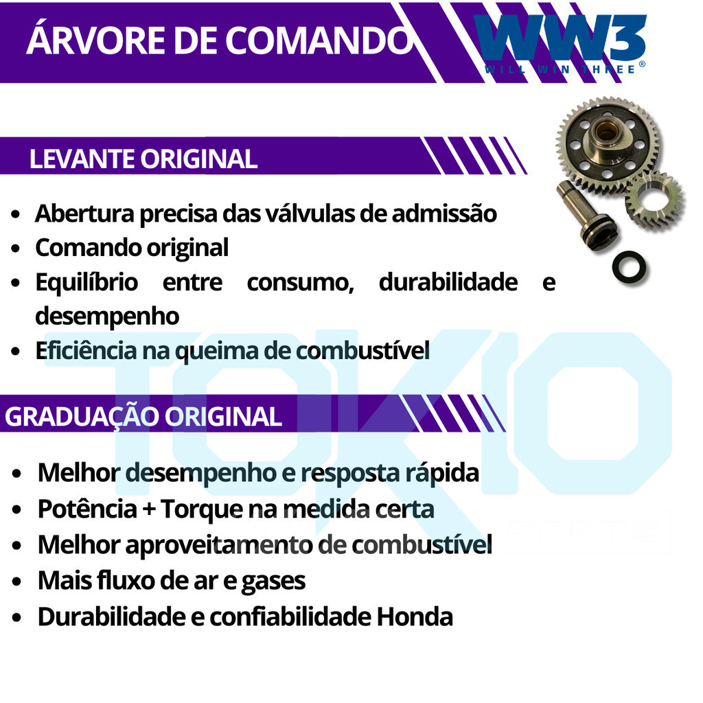 ARVORE COMANDO WW3 C/ ENG. INF. DO COM. E EIXO CG 125 92 A 99 - XLR 125 97 A 00 Fabricada com materiais de alta qualidade, ela proporciona a abertura e fechamento correto das válvulas, resultando em: Maior desempenho do motor Funcionamento suave e confiável Durabilidade e resistência ao desgaste Substituição perfeita, sem adaptações COMPATIBILIDADE: CG 125 1992 CG 125 1993 CG 125 1994 CG 125 1995 CG 125 1996 CG 125 1997 CG 125 1998 CG 125 1999 XLR 125 1997 XLR 125 1998 XLR 125 1999 XLR 125 2000 OBS: Recomendamos mão de obra especializada ---------------------------------- - Envio no máximo em 24 horas úteis. - Produto 100% original. - Devolução sem custo para o cliente (dentro do prazo de 7 dias ou em caso de garantia).