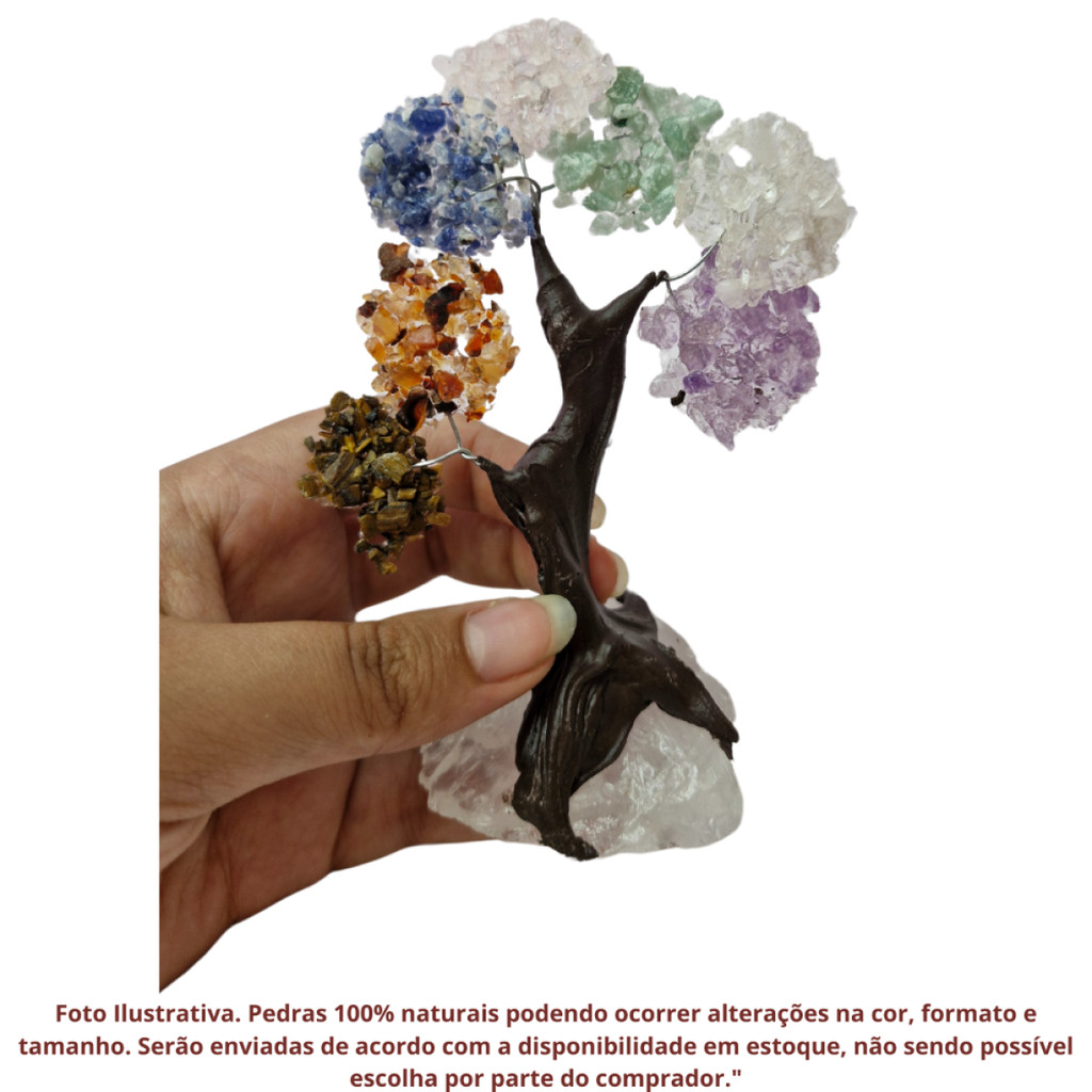Árvore de Pedras Mistas Presente e Decoração Transforme qualquer ambiente com a elegância e a energia positiva da Árvore de Pedras Mistas! Esta peça única de decoração combina a beleza das pedras naturais com o simbolismo das árvores, proporcionando uma decoração encantadora e ao mesmo tempo cheia de significados profundos. - Serão enviadas de acordo com a disponibilidade em estoque, não sendo possível escolha por parte do comprador. Benefícios das Pedras: Cada pedra possui propriedades curativas únicas, como equilíbrio, proteção e energias positivas. Estimula o bem-estar e a harmonia no ambiente em que é colocada. O design da árvore simboliza crescimento, prosperidade e renovação. Ideal para presentear alguém especial ou para complementar a decoração da sua casa ou escritório, essa árvore de pedras mistas traz um toque sofisticado e energizante. Perfeita para mesas, prateleiras ou como ponto focal em qualquer espaço. Características: Pedras Mistas Naturais, cada uma com propriedades e cores distintas Design único de árvore, com base sólida Peça de decoração com significado espiritual Ideal como presente especial ou para enriquecer a decoração de qualquer ambiente Adicione beleza, harmonia e boas energias ao seu espaço ou presenteie alguém querido com esta incrível Árvore de Pedras Mistas. Adquira a sua agora e transforme o ambiente com um toque de natureza e equilíbrio! Enviamos a sua escultura em até 24 horas após a confirmação do pagamento! Caso tenha alguma dúvida nos mande mensagem que responderemos rapidinho para te ajudar da melhor forma possível!