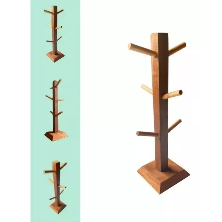 Árvore para Canecas Suporte Xícara Café com 6 Ganchos Suporte Caneca Café Madeira Balcão Bar de Café