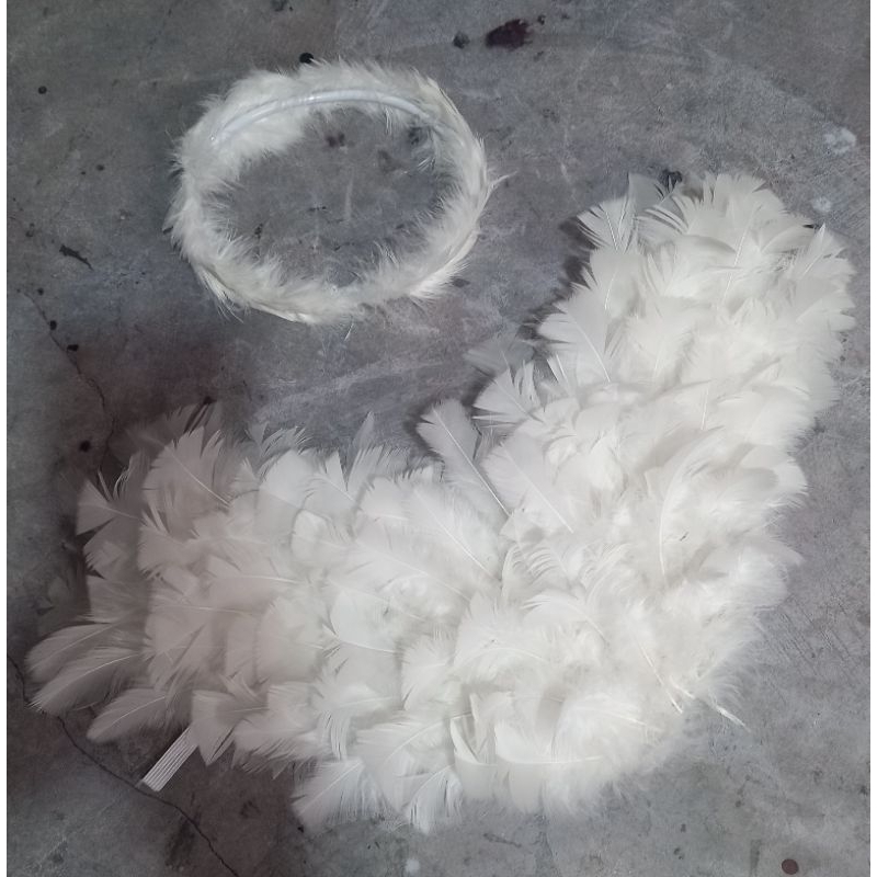 Asa de anjos para bebê feitas com penas, lavadas e com elástico, acompanha a auréola. indicado para crianças de até 1 anos de idades. medindo 46 cm de largura com 28 cm de altura, auréola tem 16 cm. Produto não pode ser lavado.